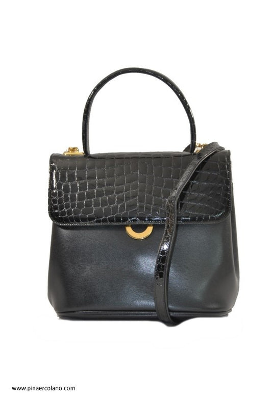Borsa a mano piccola in pelle e vernice coccodrillato - Carbotti