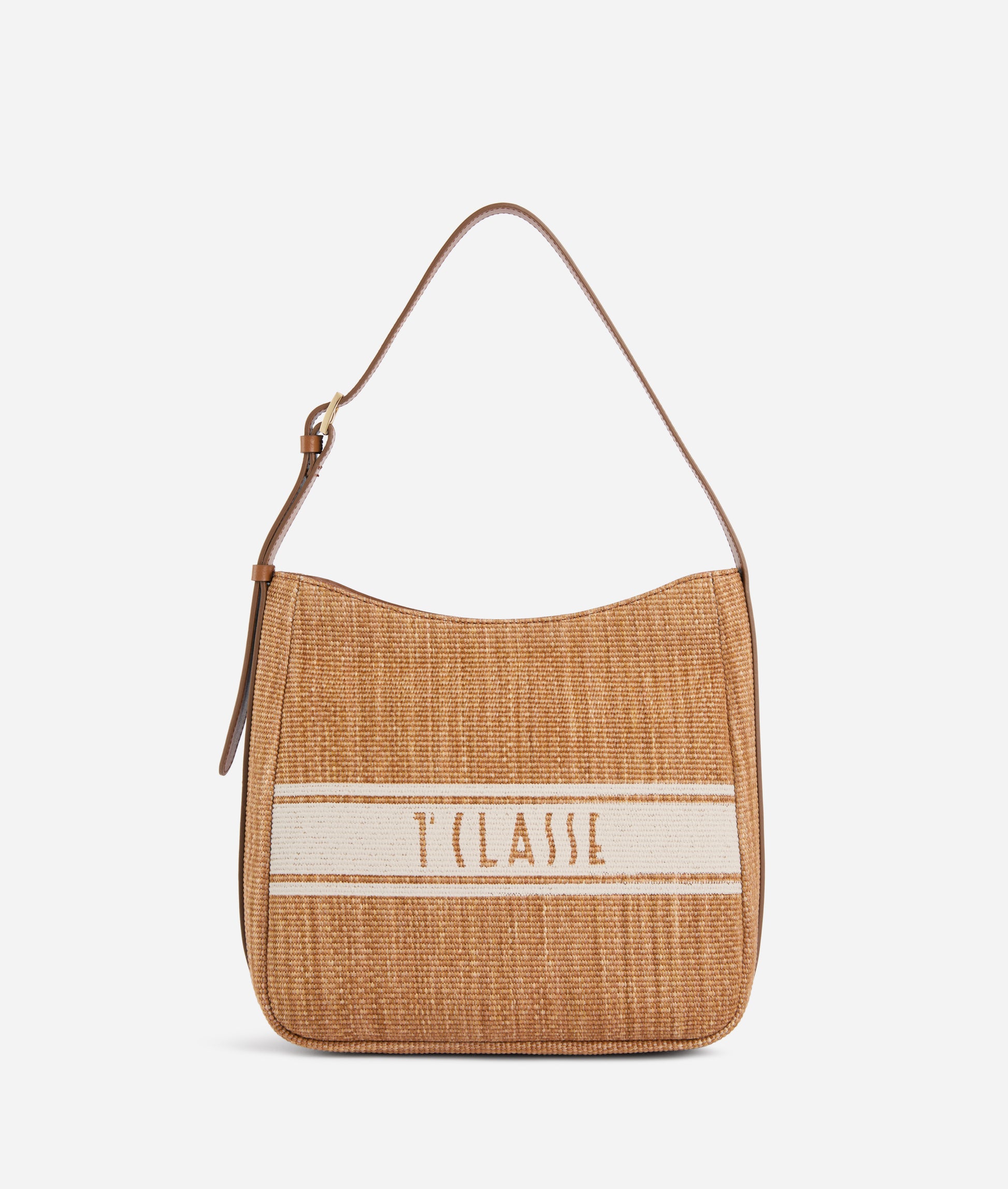 • Borsa sottospalla in tessuto effetto rafia